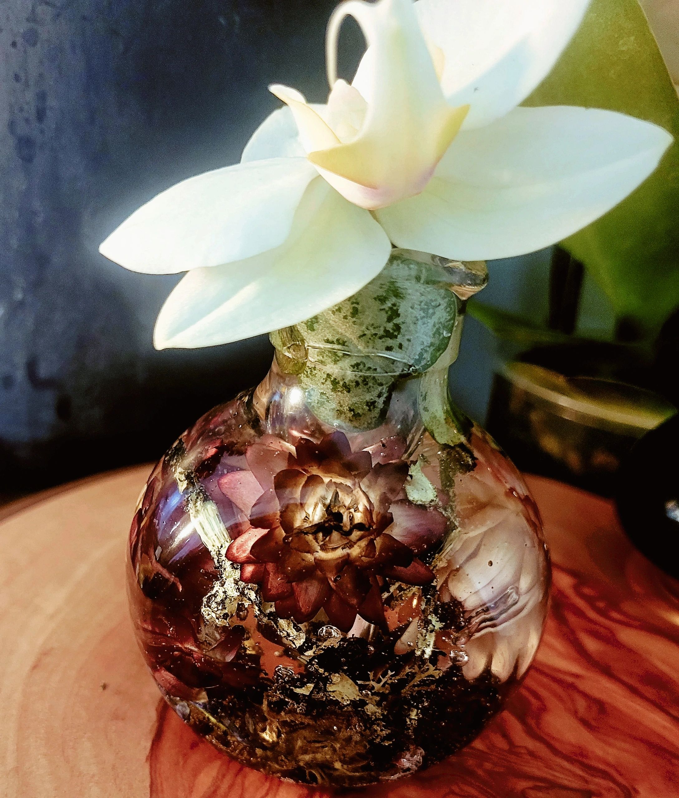 Explore bespoke resin designs with natural elements. Unique designs handmade with organic botanicals gathered locally.